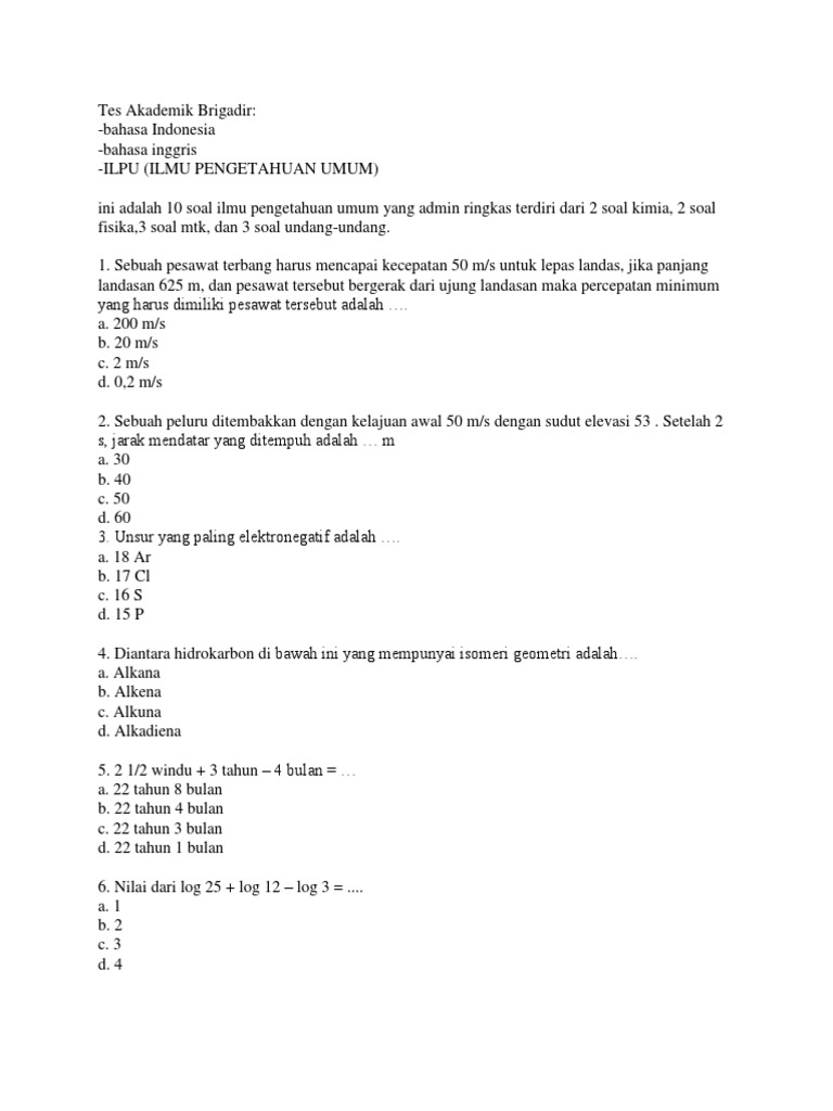 Tes akademik tni contoh soal tes akademik tni ad pdf contoh soal tes akademik secaba tni ad tes pengetahuan umum tni ad tes akademik bintara.